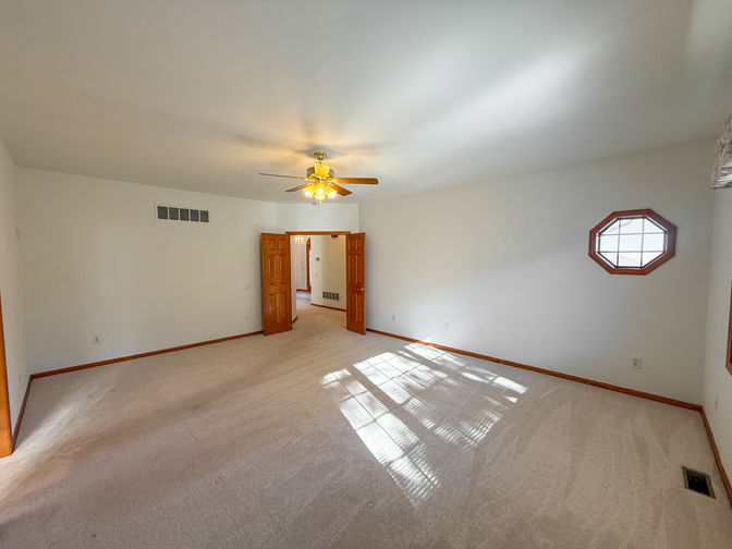 The open-concept living area is designed for connection and comfort, anchored by a natural gas fireplace with blower and enhanced by new recessed lighting and new carpeting throughout. The thoughtfully appointed kitchen showcases rich oak cabinetry, Corian countertops, updated fixtures, and quality appliances—including dishwasher, refrigerator, trash compactor, stove—all of which stay with the home.