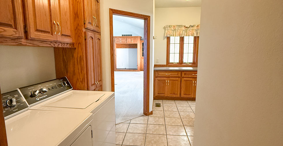 Off the living room, a laundry area equipped with a Speed Queen washer and dryer that stay with the home, ample cabinetry and convenient counter space, plus a half bath and entrance to the attached oversized garage allow for efficiency and ease to the care of family and home. Previously a secluded jacuzzi room, a bonus room at the rear of the laundry area includes a second entrance to the attached garage and creates an opportune mud room or hobby space. Basement space off the garage entrance can be utilized for storage or a safe room. Lovely French doors open into the serene primary suite, a true private retreat designed for rest and relaxation. Bathed in natural light, the space feels warm and tranquil, while the en-suite bath features a generous soaking tub, Corian countertops, and a spacious walk-in closet. Each of the three bedrooms is thoughtfully designed with well-proportioned windows that frame peaceful views and invite abundant natural light throughout the home. The second full bathroom offers both hallway access and a private entrance from the second bedroom, providing flexibility and convenience for guests or family members.